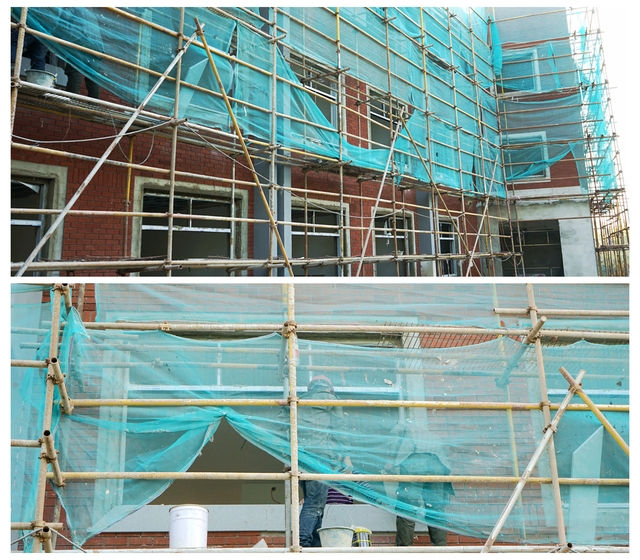 本月外立面贴砖、窗框安装基本完成,宿舍内墙地砖铺设完成,吊顶完成龙骨安装,管线敷设到位。正在进行外墙窗套安装、宿舍内墙面乳胶漆等部分的施工。11月份将结束外墙所有施工内容项目,拆除脚手架,内部装修、安装等分项工程基本完成,开始实施室外排水工程。