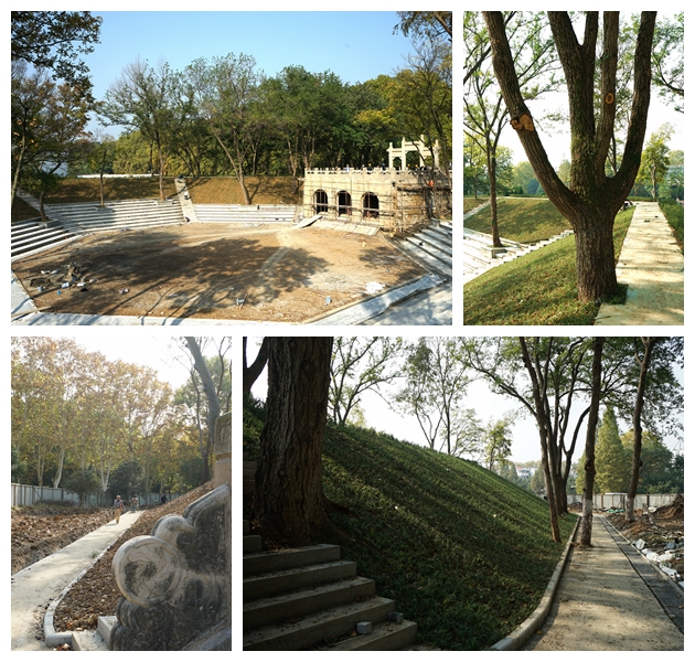本月已完成内场环道、水沟和土台、进出场台阶和看台的混凝土施工和基底粉刷工作,正在进行内场台阶的水洗砂面层施工、建筑物外立面的清洗修补、苗木栽种等工作。计划11月20日完成北广场铺装、建筑物门窗安装、内场的水沟、护坡、环道、台阶、场地面层的施工和苗木栽种的施工,坡顶环道、外场环道和看台的面层计划完成30%。