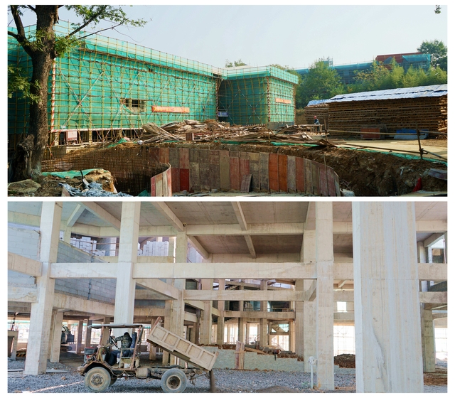本月继续进行建筑内、外部的墙体砌筑及安装工程。受经费问题影响,10月份工程进度缓慢,工期计划有所滞后。11月份将完成内、外部墙体砌筑、粉刷,水电、暖通及锅炉将进场开始施工。