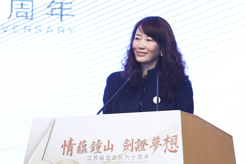 副校长、中国击剑协会秘书长肖爱华宣读了中国击剑协会贺信。贺信向江苏省击剑队全体教练员、运动员、管理人员致以热烈祝贺和诚挚问候。贺信说,江苏击剑队在人才培养、训练竞赛等各方面取得了卓越成绩,为中国击剑事业发展作出了重要贡献,其发展史是中国击剑人自强不息、团结奋斗画卷的一幅缩影。贺信希望江苏击剑队以甲子生日为新起点,凝心聚力再铸辉煌。