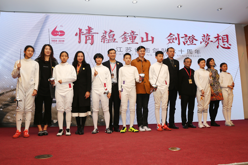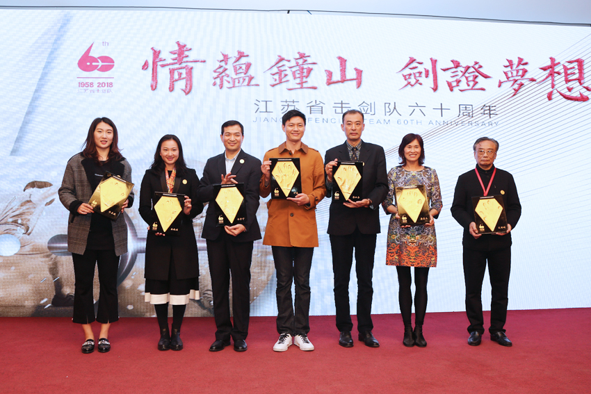 省击剑队领队王伟新在庆典上回顾了击剑队的辉煌历程。建队60年来,击剑队在奥运会上获得3枚金牌、4枚银牌、1枚铜牌,在亚运会上获得26枚金牌;在1959年第一届全运会以来的历届全运会上均摘金挂银,共获得全运会金牌49枚、奖牌110枚。击剑队为江苏省竞技体育事业、国家击剑事业的发展做出了卓越贡献,被誉为江苏竞技体育队伍中的“王牌军”。