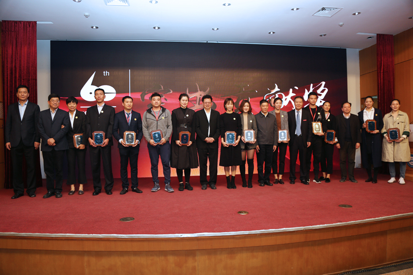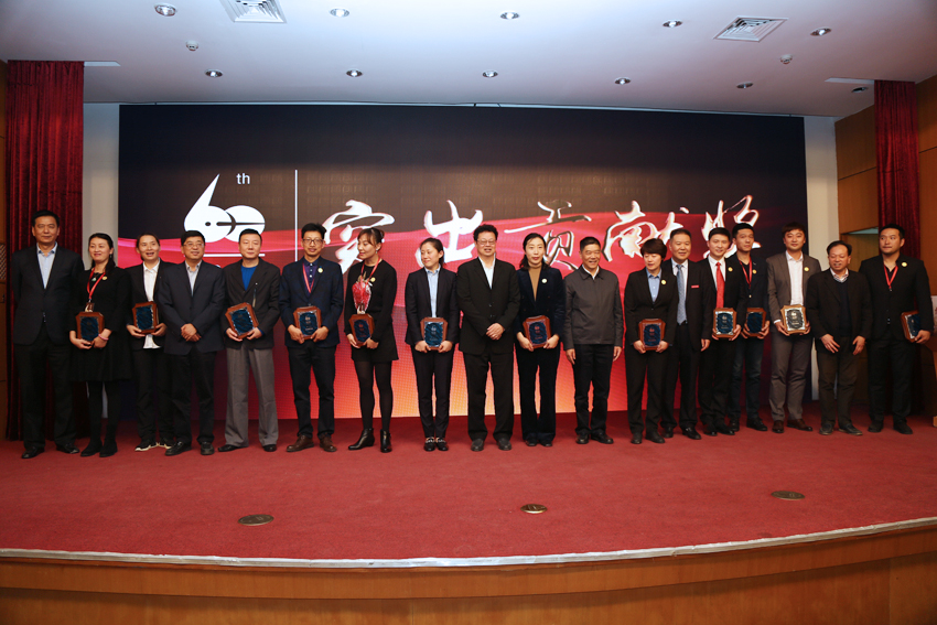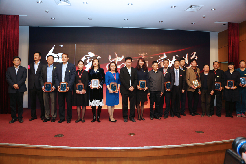 出席大会的领导与栾菊杰等七位“杰出贡献奖”获得者合影