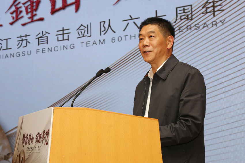 11月3日下午,江苏省击剑队隆重举行成立60周年庆祝大会。省教育厅副厅长朱卫国,省体育局副局长王伟中,校领导朱传耿、杨国庆、史国生、李江、金松、肖爱华、黄步龙,省体育总会秘书长李一冰等领导出席大会。