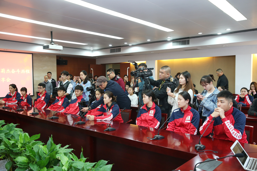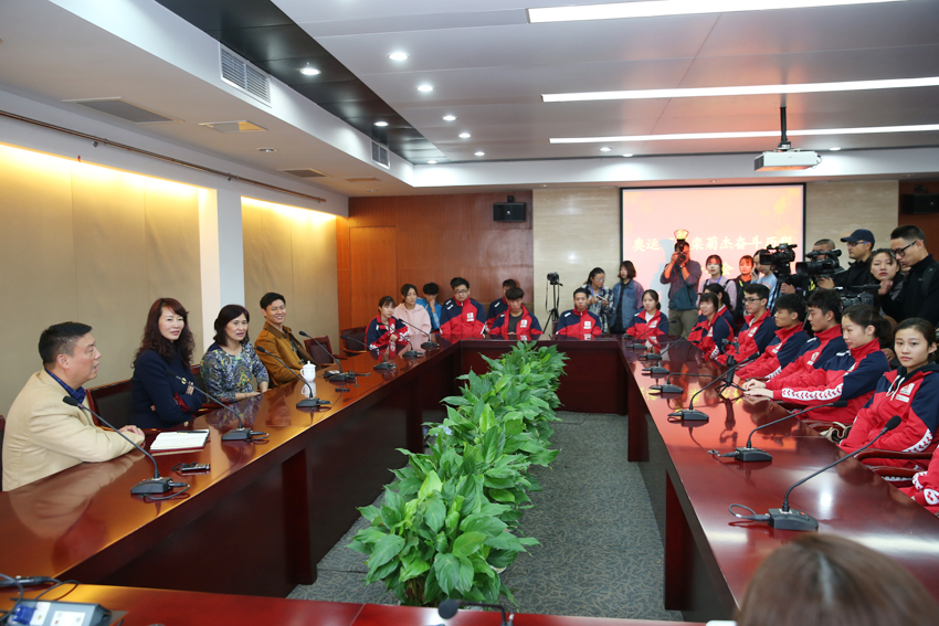 在省击剑队成立60周年之际,奥运冠军栾菊杰欣然返回母校参加庆祝活动,与现役击剑运动员分享了自己的奋斗历程。副校长、五届全运会冠军肖爱华,训练处副处长、奥运冠军仲满出席了讲座。训练处处长张健主持座谈会。
