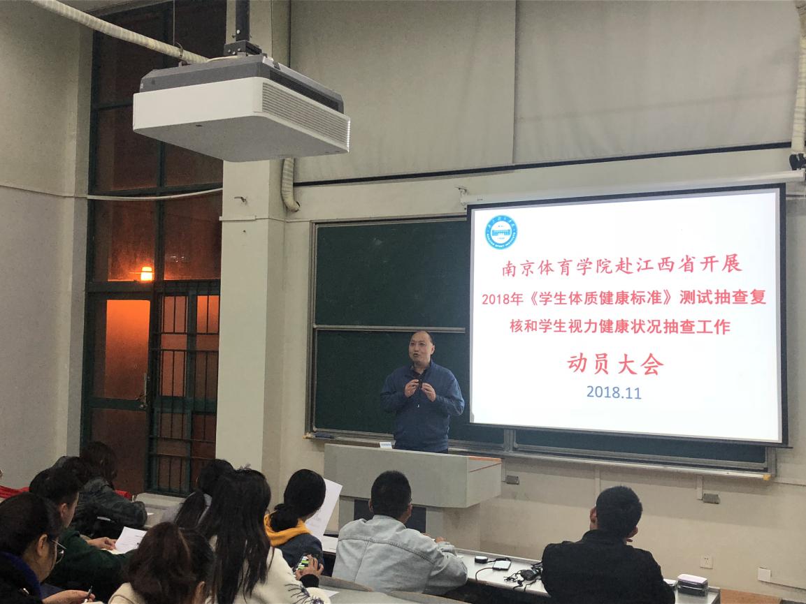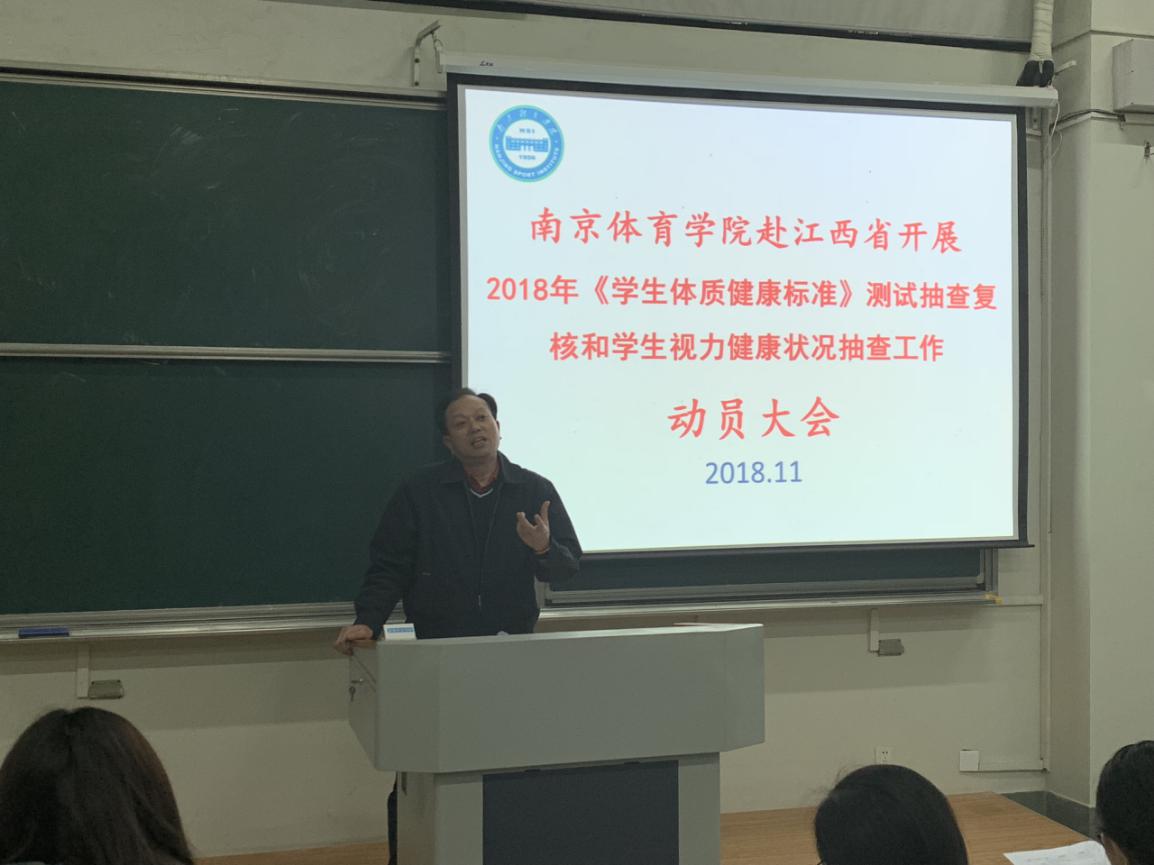 11月13日晚上18:30,PA视讯集团入口赴江西省开展2018年《学生体质健康标准》测试抽查复核和学生视力健康状况抽查工作动员大会在教学实验楼阶二教室召开。校党委副书记、副校长史国生出席会议并作动员讲话。全体参与此项工作的师生参加了动员会。