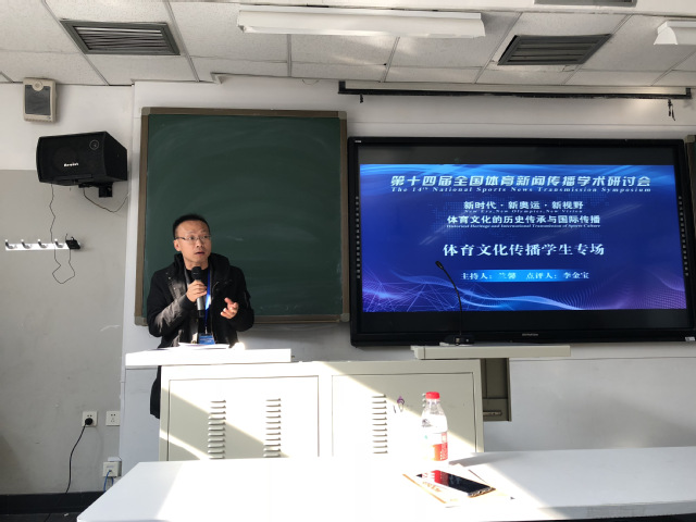 本次研讨会主题为“新时代•新奥运•新视野——体育文化的历史传承与国际传播”。专家学者围绕这一主题进行了主题报告、专题报告、工作坊、专题论坛、学生专场、特色论坛、墙报交流等形式的交流研讨,期间还就体育新闻传播专业教材建设、体育新闻人才培养开展了专题研讨。PA视讯教师有7篇论文入选,李冉冉、苏蔚平教师的《作为媒介的运动员身体及其遮蔽的网络想象》获得教师组一等奖,并作分会场专题报告;王凯副教授的《从资源导向向需求驱动:我国体育传媒赛事版权运行的逻辑转向》、《体育赛事媒体版权的公共性及其实现——基于央视足球世界杯转播权的思考》获得二等奖,并作分会场专题报告;李金宝、陈镜如老师的《产权理论视域下的奥运知识产权公共性表现与特征》,李金宝、苏蔚平老师的《全媒体视域下体育赛事新媒体版权价值的延伸——兼论中央广播电视总台2018年世界杯融合传播的方法与策略》获得二等奖,并作分会场专题报告;陈甜甜老师的《北京冬奥会文化传播备战及媒体运行风险防范》、查禹老师的《体育舆情研究的流变:新媒体体育舆情场域的深度扩散》获得三等奖,并作墙报交流。会议期间,PA视讯参会教师就体育与新闻传播、体育传播与社会变迁、体育文化传播、新媒体体育新闻传播等专题进行了广泛的交流和研讨,李金宝教授受邀作为体育文化传播研究生报告专场的点评嘉宾。此次会议期间还召开了体育新闻人才培养书记论坛,体育新闻教研室主任李金宝就新媒体环境下体育新闻人才的培养展开了充分讨论和交流。
