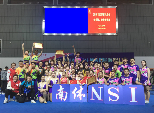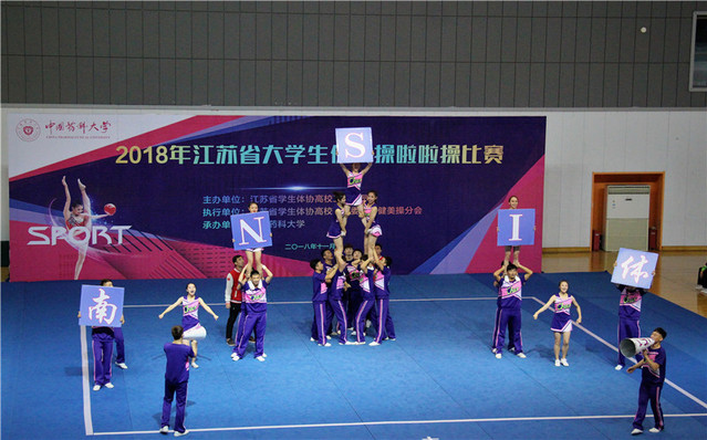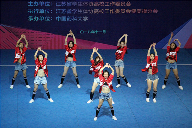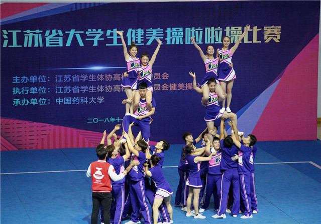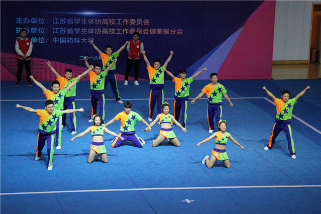 2018年江苏省健美操啦啦操比赛11月17-18日在中国药科大学体育馆举行。本次比赛由江苏省学生体协高校工作委员会、江苏省学生体协委员会健美操分会、中国药科大学联合举办,来自江苏省20多所高职院校600多名大学生参加了健美操、啦啦操项目的竞赛。