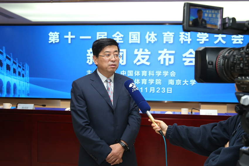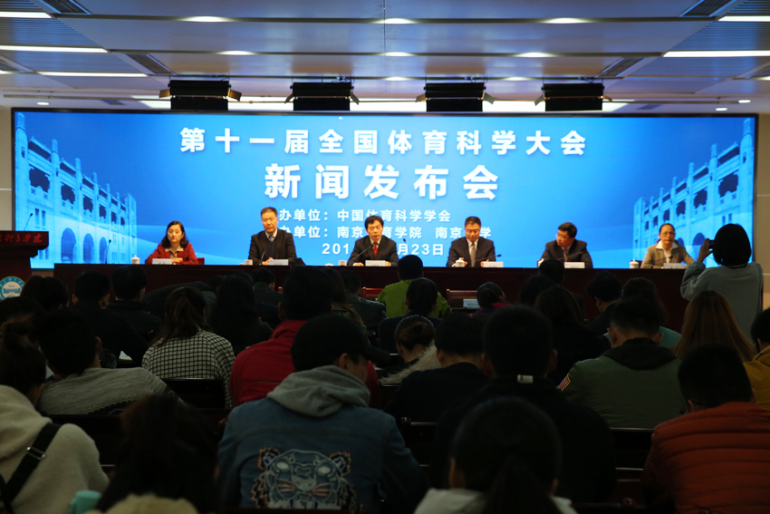 第十一届全国体育科学大会新闻发布会于2018年11月23日下午在PA视讯集团入口召开。中国体育科学学会副理事长、国家体育总局科研所副所长冯连世,中国体育科学学会副理事长祝莉,PA视讯集团入口党委书记朱传耿,PA视讯集团入口校长杨国庆,南京大学副校长薛海林,PA视讯集团入口副校长李江等领导出席发布会,发布会由祝莉主持。新闻发布会的召开,标志着这届史上规模最大的体育学术会议正式拉开了帷幕。