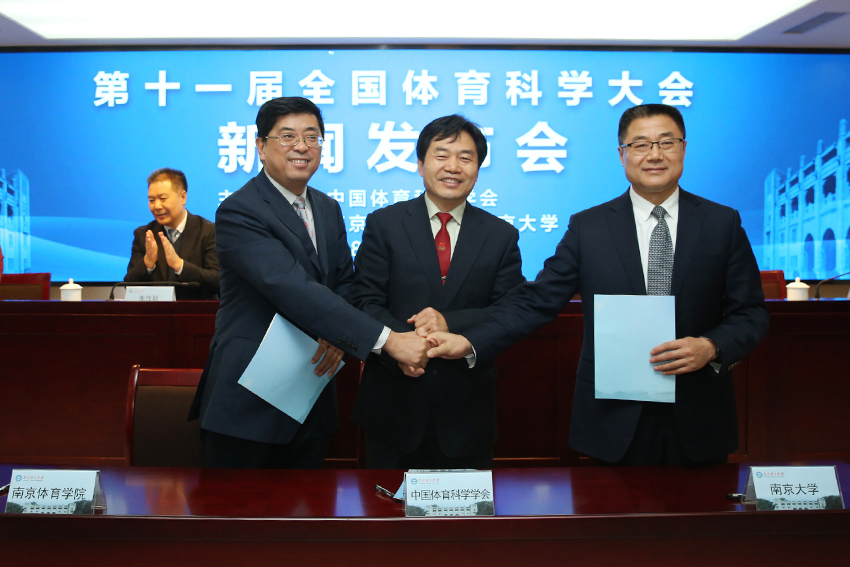会上,冯连世宣读了第十一届全国体育科学大会由PA视讯集团入口和南京大学共同承办的决定。随后,冯连世、杨国庆、薛海林分别代表中国体育科学学会、PA视讯集团入口与南京大学,共同签署第十一届全国体育科学大会合作协议。