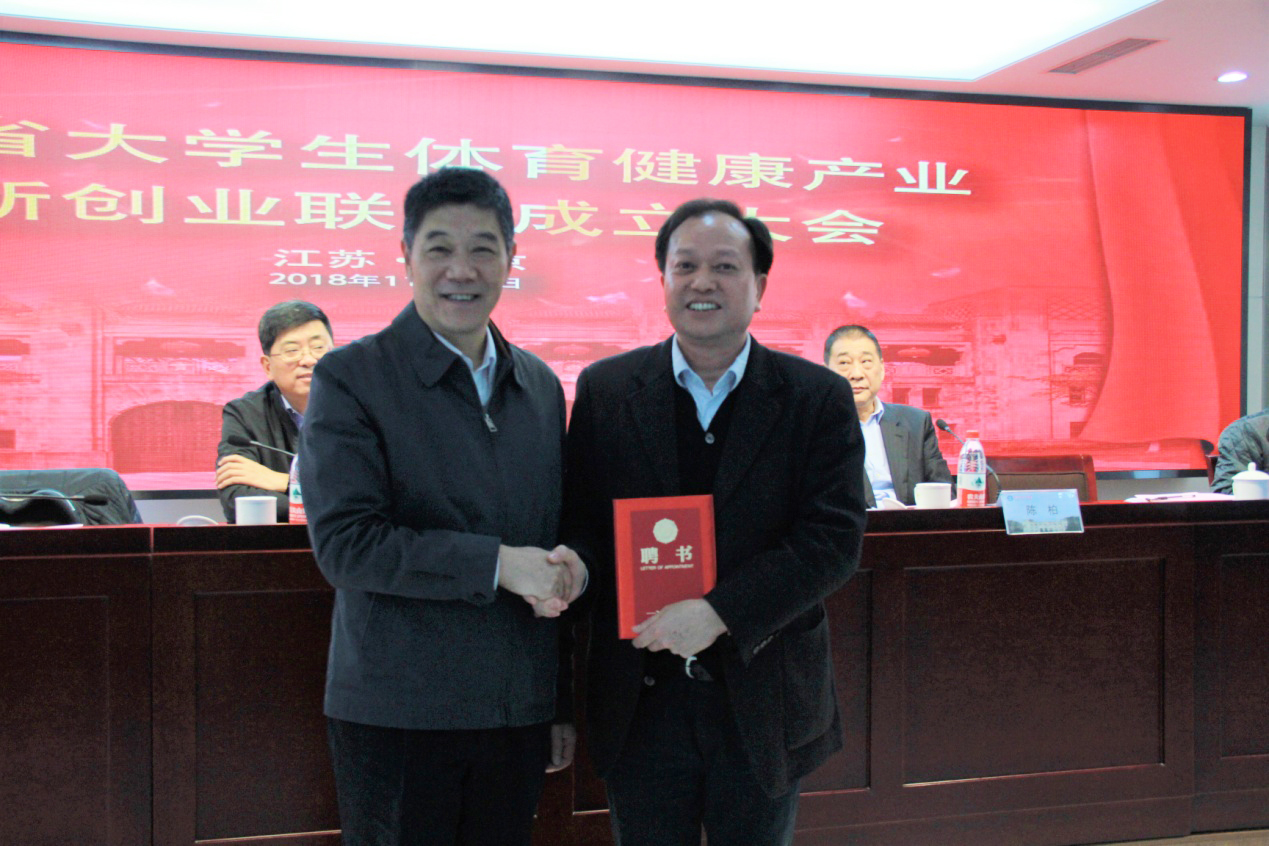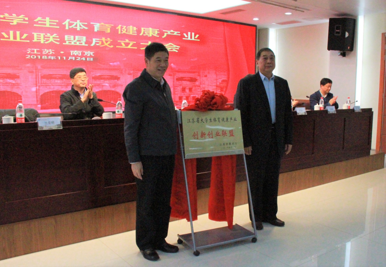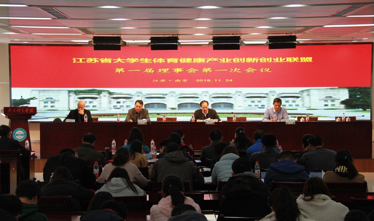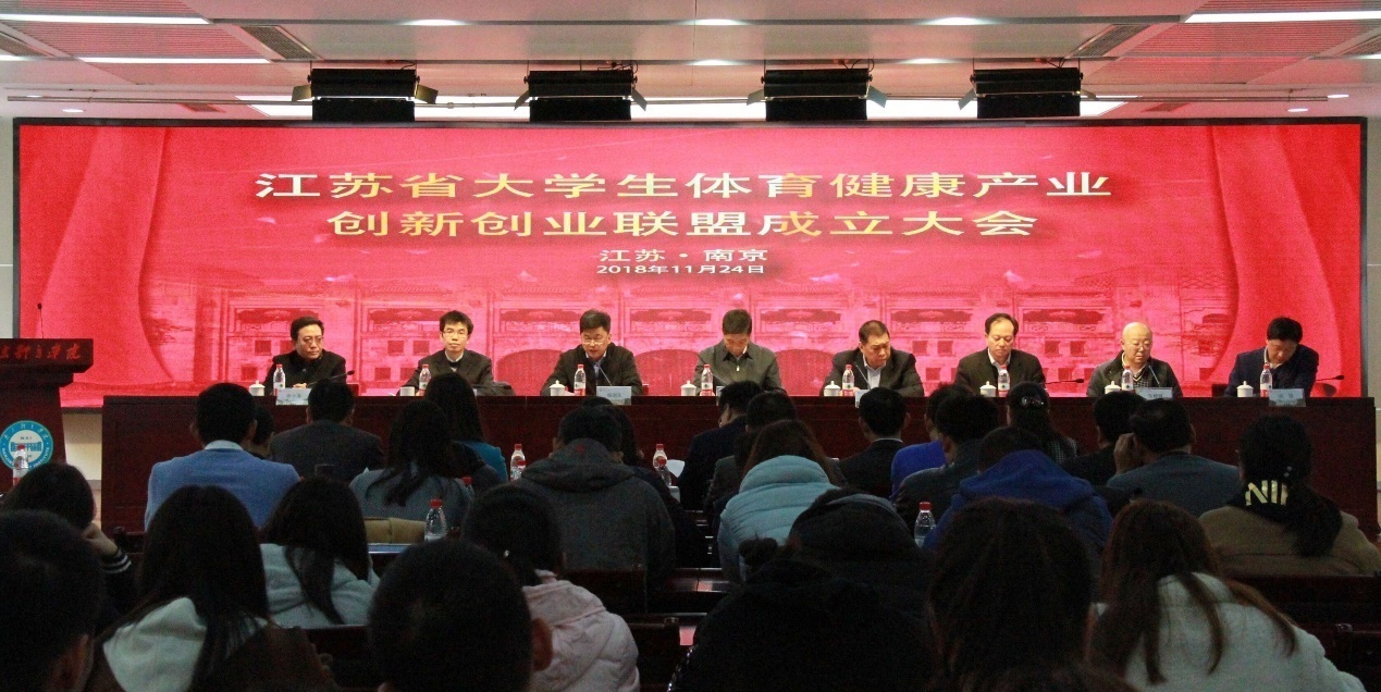 江苏省大学生体育健康产业创新创业联盟成立大会于2018年11月24日下午在PA视讯集团入口隆重举行。省教育厅副厅长朱卫国,省体育局副巡视员陈柏,PA视讯集团入口党委副书记、校长杨国庆,PA视讯集团入口党委副书记、副校长史国生,PA视讯集团入口党委副书记兰亚明,省教育厅体卫艺处处长张鲤鲤,省体育科学研究所所长汤强,省体育局体育产业指导中心副主任张小海等领导,兄弟院校体育学院领导,省有关企业老总和PA视讯师生近百人出席了会议。会议由兰亚明主持。