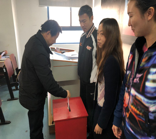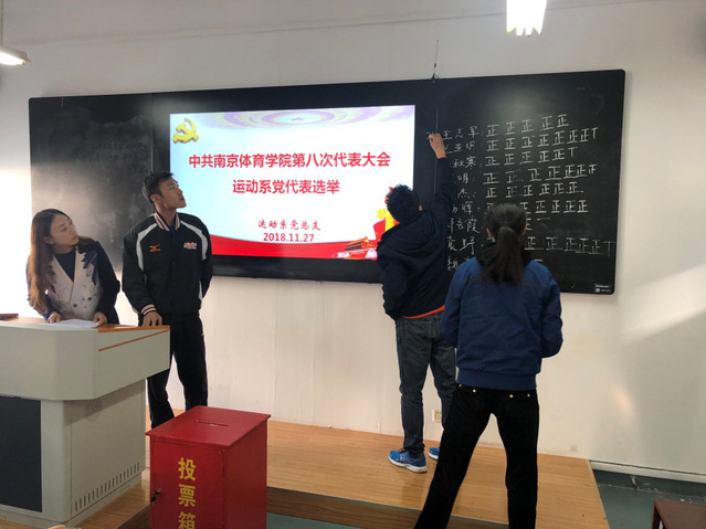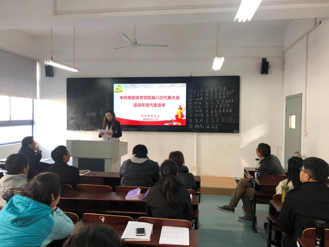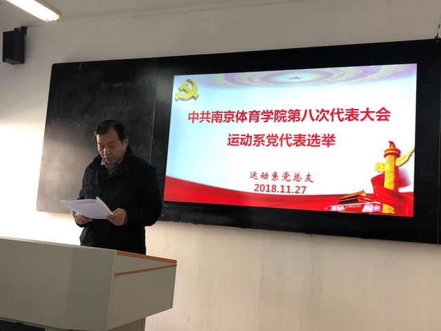 运动系党总支于2018年11月27日在仙林教学楼408召开党员大会进行校第八次党代会代表选举。出席会议的运动系(足球学院)党员共有37位,系党总支书记袁野宣读选举词,并讲解选举办法和流程。根据《中国共产党党章》和《中国共产党基层组织选举工作暂行条例》的规定,按照中共PA视讯集团入口第八次代表大会代表选举办法,经系党员大会差额选举王志军、兰亚明、江秋寒、张明、张杰、杨晖、袁野等七位同志为中共PA视讯集团入口第八次代表大会代表。