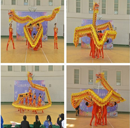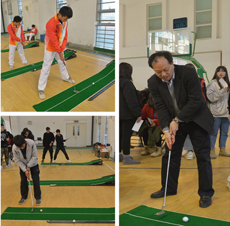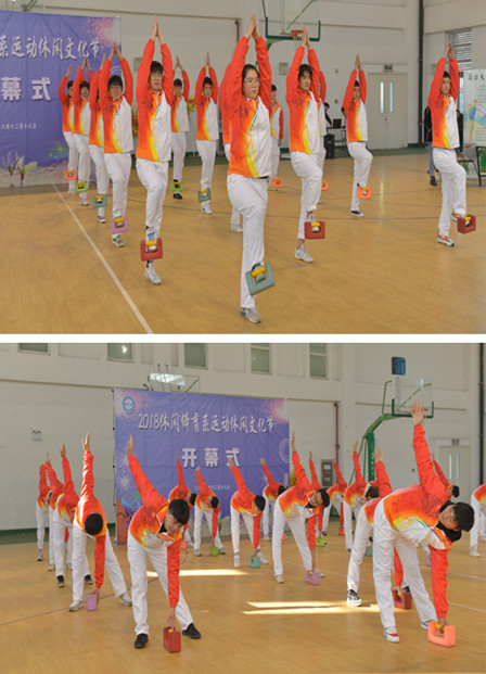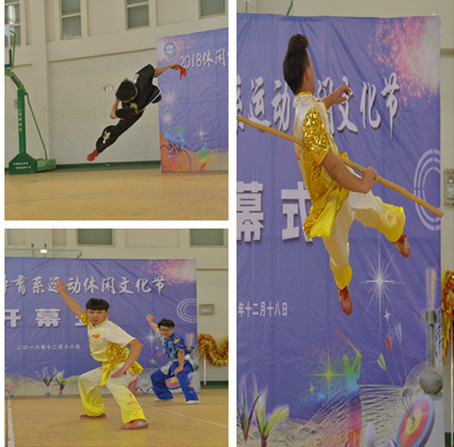 开幕式上,我系舞龙队开场表演,犹如腾云行水,矫健雄劲,赢得全场喝彩。石锁操、花球啦拉操、武术、抖音舞等节目的表演获得领导、师生的阵阵掌声。开幕式结束之后,全体人员进行高尔夫、石锁、飞镖、跳绳、踢毽子、投壶运动休闲项目的体验。