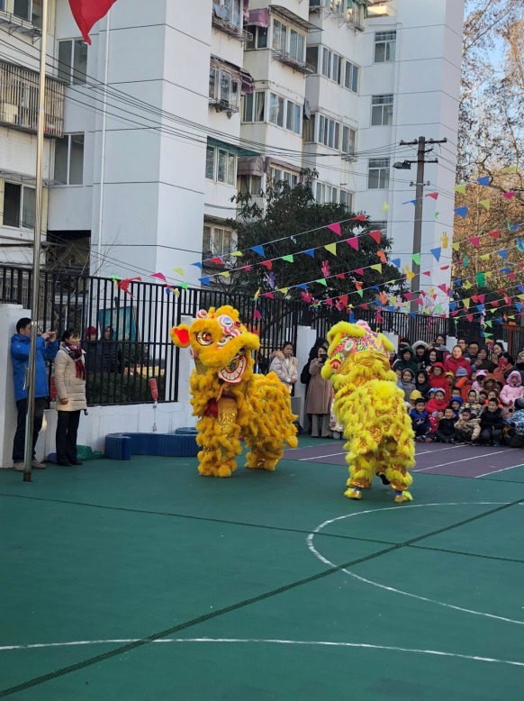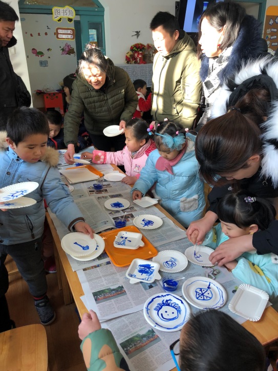 12月29日上午,孩子、家长、教师齐聚张灯结彩,年味浓郁的幼儿园。活动在雄壮的国歌声中以升旗仪式开始。紧接着是民表系为家长和幼儿园表演的舞狮子、设艺。接下来是全园的分散在各班的民俗游园活动。活动有:传统美食制作、传统游戏、传统艺术风等版块。传统美食制作体验活动中,老师和家长志愿者一起为孩子们提供了包饺子、搓元宵、蒸面糕等中华传统美食体验项目。孩子们在做一做、尝一尝中感受到中国舌尖上的文化;传统游戏贴鼻子让孩子们在欢笑中感受中国“玩”的文化;传统艺术风体验活动中更是展现了中华民族的文化艺术瑰宝,不但有青花瓷、写福字、捏面人儿、剪纸等众多体验活动,幼儿园还在小剧场里播放反映改革开放四十年来我们生活变化的纪录片。
