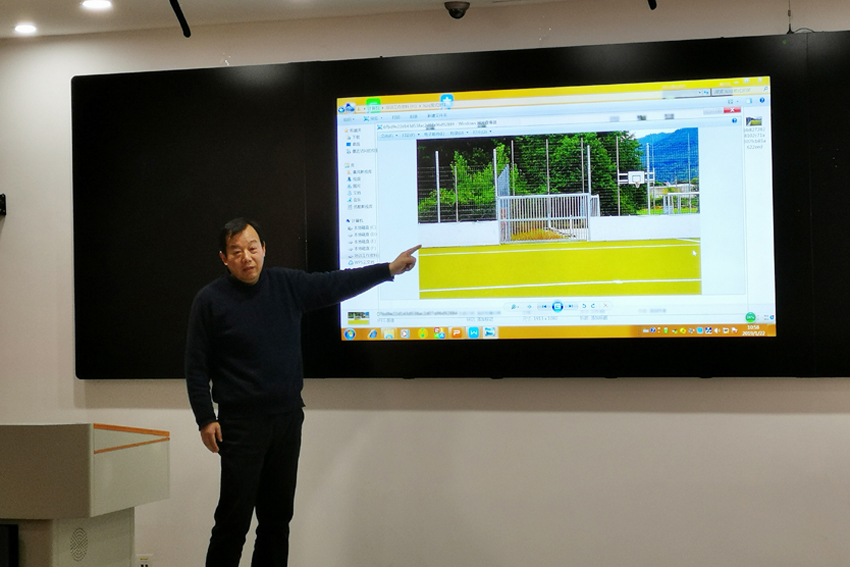 袁野作为主讲人,从我国笼式足球开展现状,参考国内外笼式足球场地标准,借鉴相关球场的设计理念,逐条解读了《笼式足球标准》初稿。