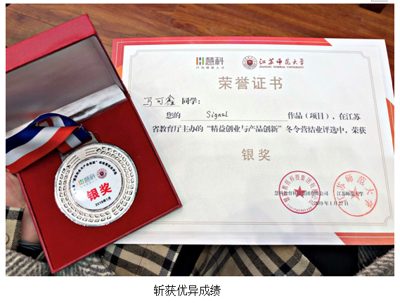 经过评比,我系学生马可鑫与她的小组成员们一起研发的高校交友APP项目“SIGNAL”,一举斩获银奖,拿到了总分第二名的优异成绩。