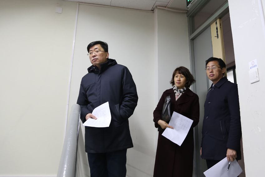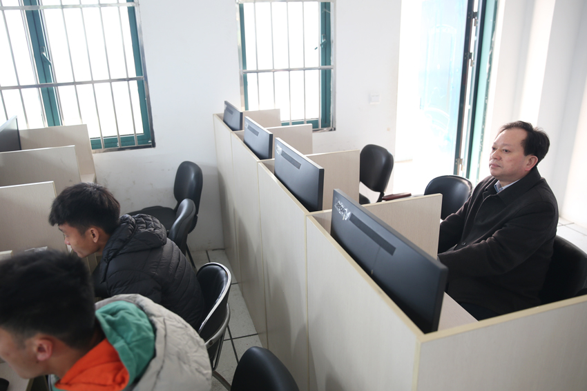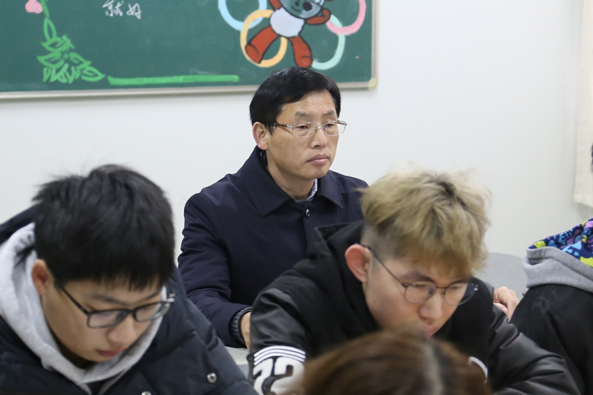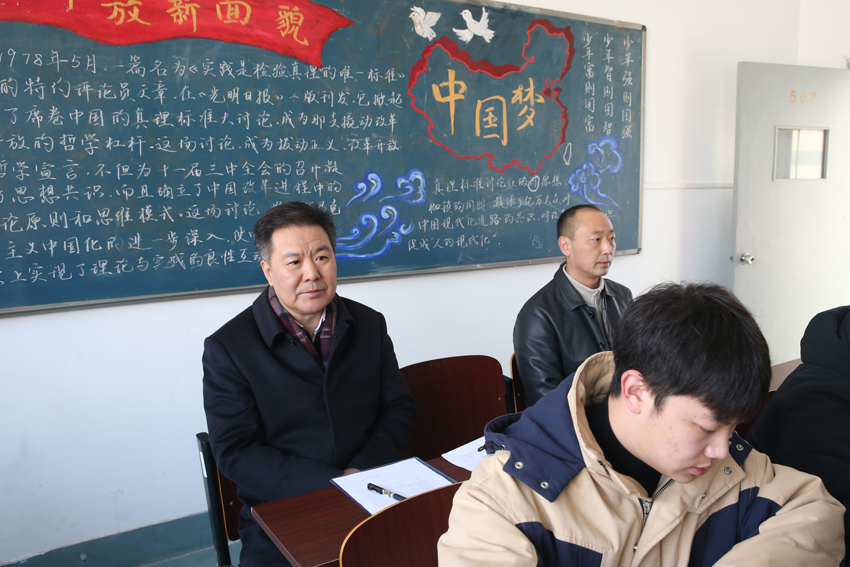 校长杨国庆、纪委书记潘林珍、总会计师黄步龙察看课堂教学情况
