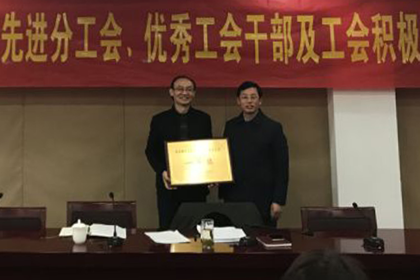 校总会计师黄步龙为先进分工会颁奖