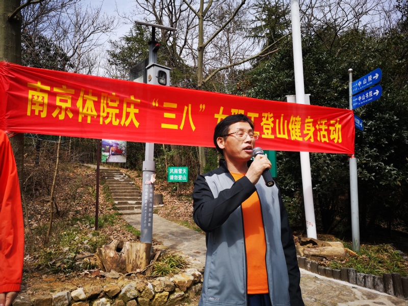 紫金山登山健身活动开始前,校党委常委、总会计师黄步龙发表讲话,向全校女教职工致以节日的问候,感谢大家为PA视讯建设发展所做的贡献。他指出,在PA视讯刚刚召开的第三届第三次教职工代表大会暨工会会员代表大会上,朱传耿书记的讲话、杨国庆校长的工作报告和教代会执行委员会、第三届工会委员会的工作报告回顾了2018年的成绩,布置了2019年的工作,明确了工作目标,鼓舞了人心,同时对PA视讯女教职工在工作岗位中取得的优异成绩给予了充分肯定。他希望广大女教职工发挥各自聪明才智,在各自工作岗位上建功立业,紧紧围绕 “优势突出、特色鲜明、国内一流、国际知名的高水平体育大学”的奋斗目标而不懈奋斗。