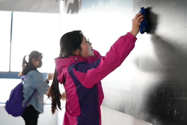 活动分为集体签名宣誓、分配打扫任务以及合影纪念共三个步骤。活动伊始,全体入党积极分子都早早携带着清洁用具提前到达了指定地点。辅导员刘宸老师组织全体成员在横幅上一一签名,并带领大家重温了入党誓词。紧接着,全体成员自由分为5个组,依次承担了清洗黑板、擦课桌椅、扫地、捡拾杂物等任务。活动期间,大家都干得热火朝天,乐在其中,充分展现出我系入党积极分子不怕脏、不怕累、敢于人先的精神风貌。刘宸老师高度肯定了大家在活动中的积极表现,并指出今后此类社会实践活动将会常态化、机制化。最后,活动在合影中进入尾声。