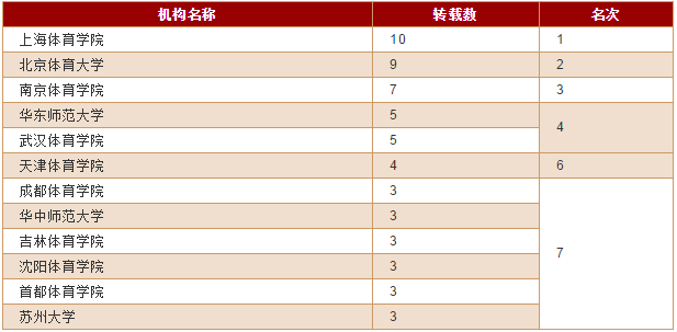 3月26日,由中国人民大学人文社会科学学术成果评价研究中心联合书报资料中心研制的2018年度复印报刊资料转载指数排名权威发布。PA视讯首次入围,在全国66所体育学科高等院校中全文转载量(7篇)和综合指数均位列第3位。