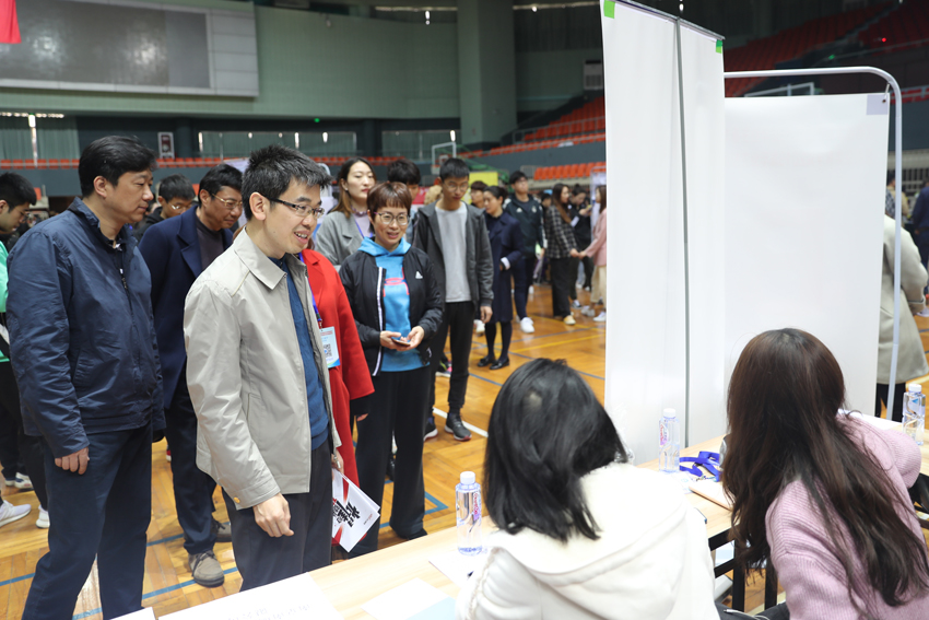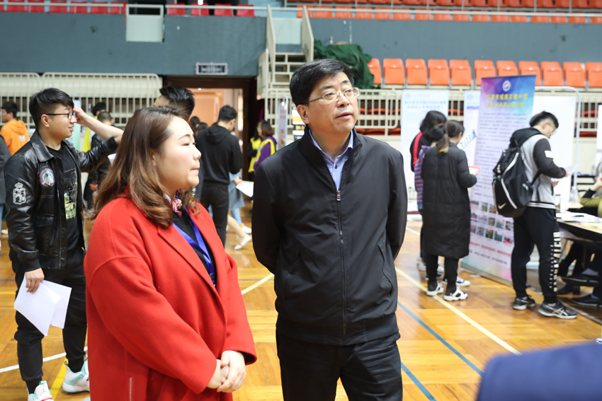 PA视讯党委副书记、校长杨国庆,校党委副书记兰亚明和校学工处、人事处、保卫处、各教学单位等相关职能部门以及各院系出席了本次招聘会。