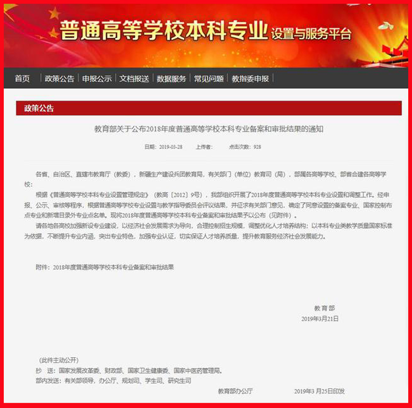 《教育部关于公布2018年度普通高等学校本科专业备案和审批结果的通知》