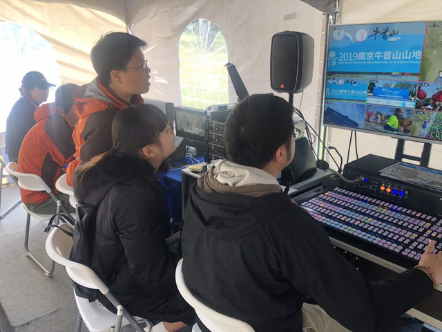 为了提升学生专业能力,推进赛事转播实践教学,体育系新闻专业师生利用课余时间,不断拓展实践内容,参与体育赛事转播实践活动。3月30日至3月31日,新闻专业赛事转播团队在牛首山景区进行了奔跑江苏首站牛首山四分之一山地马拉松。该场体育赛事转播由江苏省广播电视总台制作信号,新闻专业学生承担视讯,摄像等岗位。3月30日,学生早早赶到牛首山,在江苏广电总台赛事转播团队老师的指导下,同学们协助他们组装、调试摄像机,并到指定位置进行信号测试。学生们积极与江苏广电总台专业人员交流技术,有的自己熟悉摄像机使用,转播棚内工作的同学认真聆听导播与各个摄像的沟通,这样的场景使原本枯燥的测试阶段顿时充满了活力。
