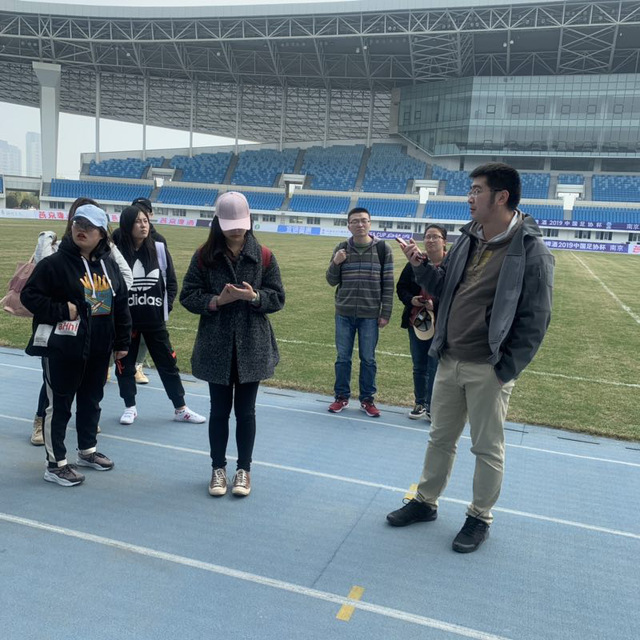 上午十点,参与活动的同学来到青奥体育公园体育场,江苏省广播电视总台技术部负责人向同学们讲授了体育赛事转播流程、体育赛事转播技巧以及足球赛事转播注意事项等内容。随后,同学们在场馆内参观学习了体育赛事转播设备搭建、机位设置等赛事转播前期要求。下午一点,同学们在江苏省广播电视总台技术部老师的带领下,近距离接触体育赛事转播车,了解转播车内部的构造、导播台等讯号转换、体育场馆内直播设备设置,技术部老师还向同学们讲授了体育赛事转播系统搭建流程,体育赛事转播导播、摄像的相关要求。近四个多小时的学习,学生兴致浓厚,感受颇深。随后,十多名新闻专业同学直接参与了下午3点钟开始的本赛事转播活动。