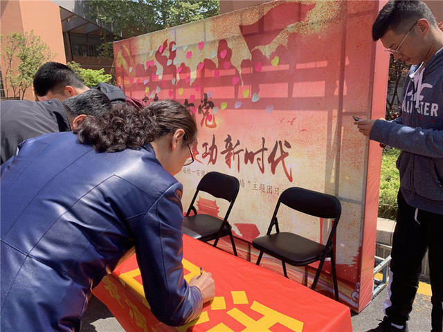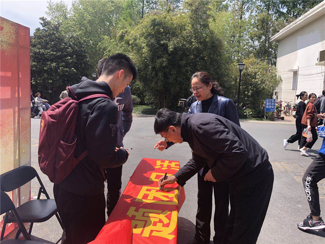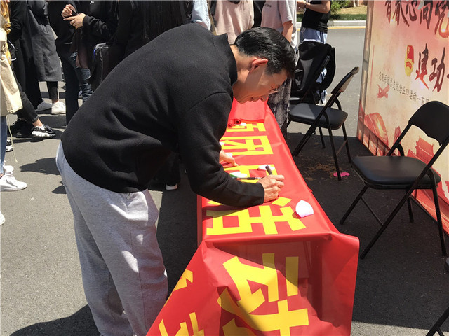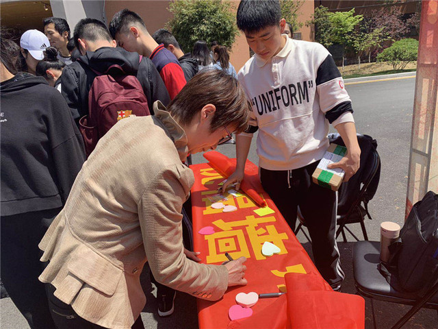 4月15日中午,武术与艺术学院(原民族体育与表演系)在图书馆门口开展“青春心向党•建功新时代--爱国祝福墙”主题教育活动。校党委副书记、校长杨国庆,副校长李江,武术与艺术学院院长支川,副院长叶瑛等领导到现场与师生一起参加了活动,并在“祝福墙”上留下自己对祖国的诚挚祝福。