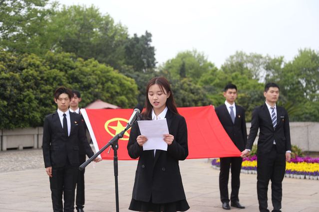 4月16日下午,校团委组织二级学院部分团干部、团员青年以及马克思主义学院马克思主义青年说暨习近平新思想研习社团、思政课实践教学的部分学生代表共计100人赴雨花台开展“青春心向党·建功新时代”纪念五四运动100周年特别主题团日活动之“承五四精神,继英烈遗志,努力建设青年身边的共青团”主题教育活动。活动仪式由校团委副书记阚妮妮主持。