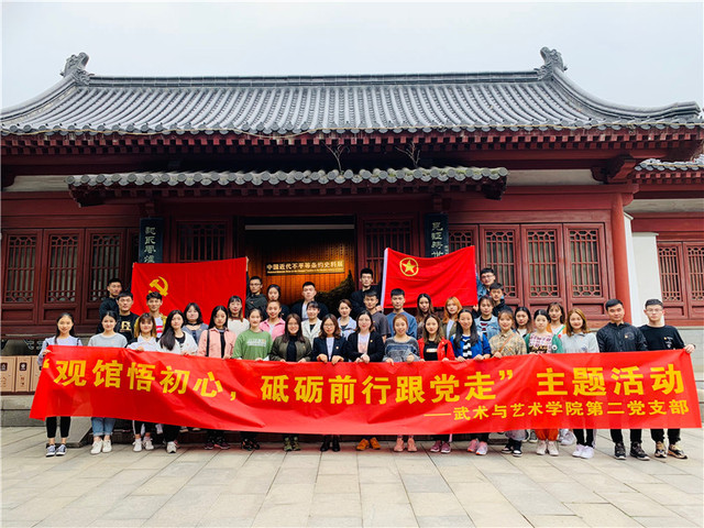 4月23日中午,武术与艺术学院第二党支部组织全体党员和入党积极分子赴静海寺《南京条约》史料陈列馆开展“青春心向党·建功新时代”纪念五四运动100周年主题活动之“观馆悟初心,砥砺前行跟党走”主题党日活动。