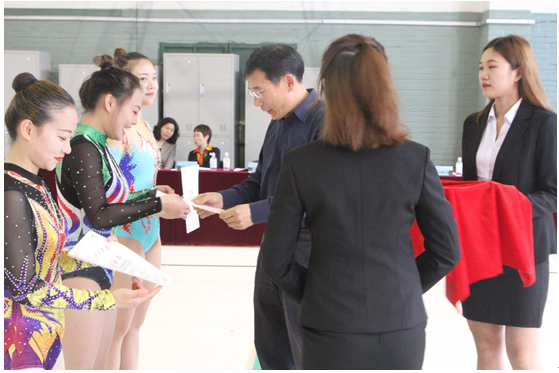 武术与艺术学院院长支川给运动员颁奖