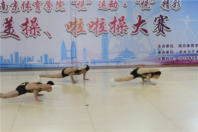 4月20日上午为健美操比赛,设有男子单人操、女子单人操、三人操、五人操和规定有氧操等项目;下午为啦啦操比赛,设有规定动作、自选动作、小团体技巧等组别。全校五院一部共派出11支代表队参加健美操比赛,26支代表队参加啦啦操比赛,总参赛人数达到422人次,比赛规模大、参与范围广,在全校极大地扩进了健美操和啦啦操的影响力。