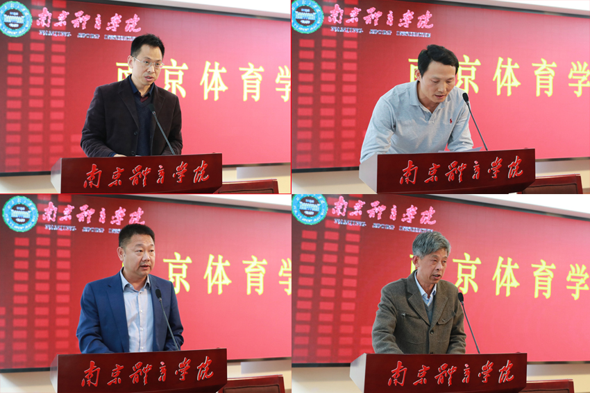 运动健康学院党总支书记王猛,击剑学院直属党支部书记、院长沈朝阳,人事处处长、机关第二党总支书记张敏,后勤党总支书记顾道分别代表教学、训练、机关、后勤,就如何落实好目标责任书、执行好学校年度计划作表态发言。