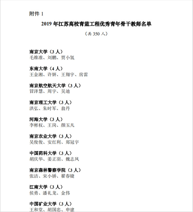 根据《省教育厅关于公布2019年江苏高校“青蓝工程”培养对象的通知》(苏教师﹝2019﹞3 号),PA视讯谢正阳入选2019 年江苏高校“青蓝工程”中青年学术带头人培养对象,吕园欣、康晓磊入选2019 年江苏高校“青蓝工程”优秀青年骨干教师培养对象,培养期为2019年4月至2022年4月。