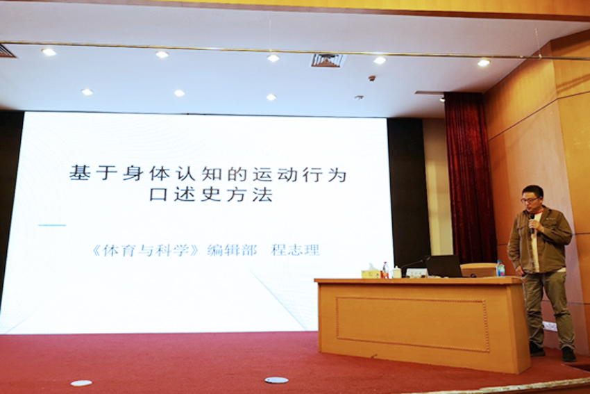 程志理在讲座中指出,体育学的研究分为两种思维模式,一种是研究人体的“生物体育学”,另一种是研究运动行为的“行为体育学”。前者是基于认识论,后者回到体育的本体论。他认为很难用数据和客观的观察方式来准确判断人的行为特征,由此口述史就被引入到体育学研究中。作为体育学研究方法的“口述史”,是基于体认范式的运动行为阐释,是运动行为研究证据链互证环节的一部分。口述史作为基于身体认知的运动行为研究方法,包含五大要素:即回到运动情景、文化在场、现场感、切身感和拟态。
