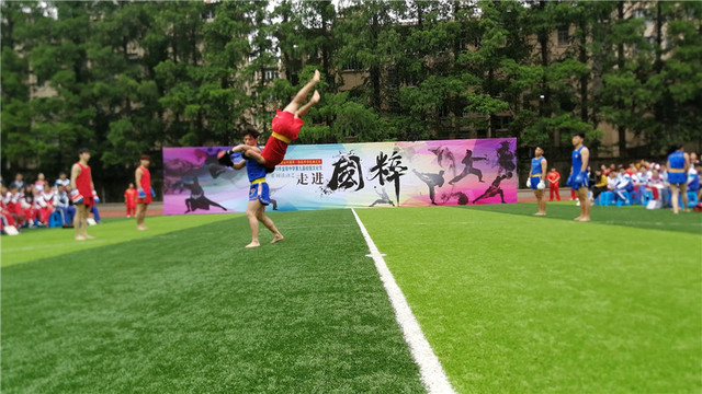 5 月30日下午,PA视讯集团入口武术与艺术学院、中国近代武术研究中心参加了由南京金陵中学举办的文化艺术节--弘扬国粹活动。武术套路队、武术散打队共25名学生及指导教师陈芳、吴继魁应邀参加活动。弘扬国粹活动启动前期武术与艺术学院相关领导非常重视,经过支川院长精心策划部署,弘扬国粹活动共演出通臂拳、南拳、九节鞭、刀术、对刺剑、南棍、太极拳等12个传统武术节目,并进行了散打攻防格斗展演以及集体武术表演《以武为名》等集体项目的演出。