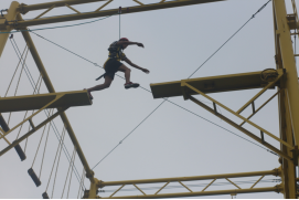 体育产业与休闲学院院长于翠兰、党总支书记王进、副院长唐芒果及各专业负责人分别参加了3期的特训班。休闲体育、社会体育指导与管理、体育经济与管理三个专业的同学们接受了户外拓展训练的概念与特征,项目简介、高空装备佩戴、职业概况、发展前景以及拓展教练工作流程等基本的理论学习。在实践课程方面,同学们进入专业拓展基地进行封闭式训练,现场体验了完整拓展活动流程,掌握了高空装备的佩戴、绳索的打结,如何与学员的有效沟通,如何针对不同企业做项目形式的变换与分享等等。在12天的实训过程中,同学们热情高昂,收获满满。
