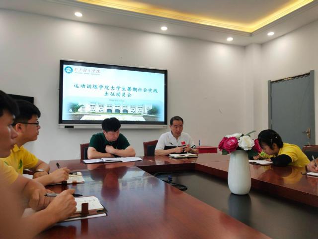 7月7日上午7时,运动训练学院于仙林校区教学楼101会议室召开2019年大学生暑期社会实践出征动员会。参加会议的有运动训练学院党总支书记张亚军、运动训练学院党总支副书记杜家俊、运动训练学院辅导员刘宸以及全体参加大学生暑期社会实践的同学。会议由刘宸主持。