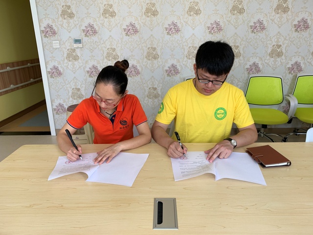 会上,曹老师首先对于运动训练学院暑期社会实践团队的到来表达了热烈的欢迎。围绕围绕该中心的办学背景、办学规模、教学形式、生源类型、课程设置等方面,曹主任依次为我们作了具体介绍。她指出,现在社会对于自闭症、脑瘫症等弱势群体的关注力度仍有所欠缺,对于PA视讯集团入口能够关注到这部分“星星的孩子”,并发起大学生暑期社会实践活动来关心、帮助他们表示衷心的感谢。此外,马主任与刘宸老师签署了暑期社会实践协议书,就自闭症、脑瘫症儿童的注意事宜进行了相关说明,并预祝南体添翼天使暑期社会实践团队取得圆满成功,全体队员收获满满。