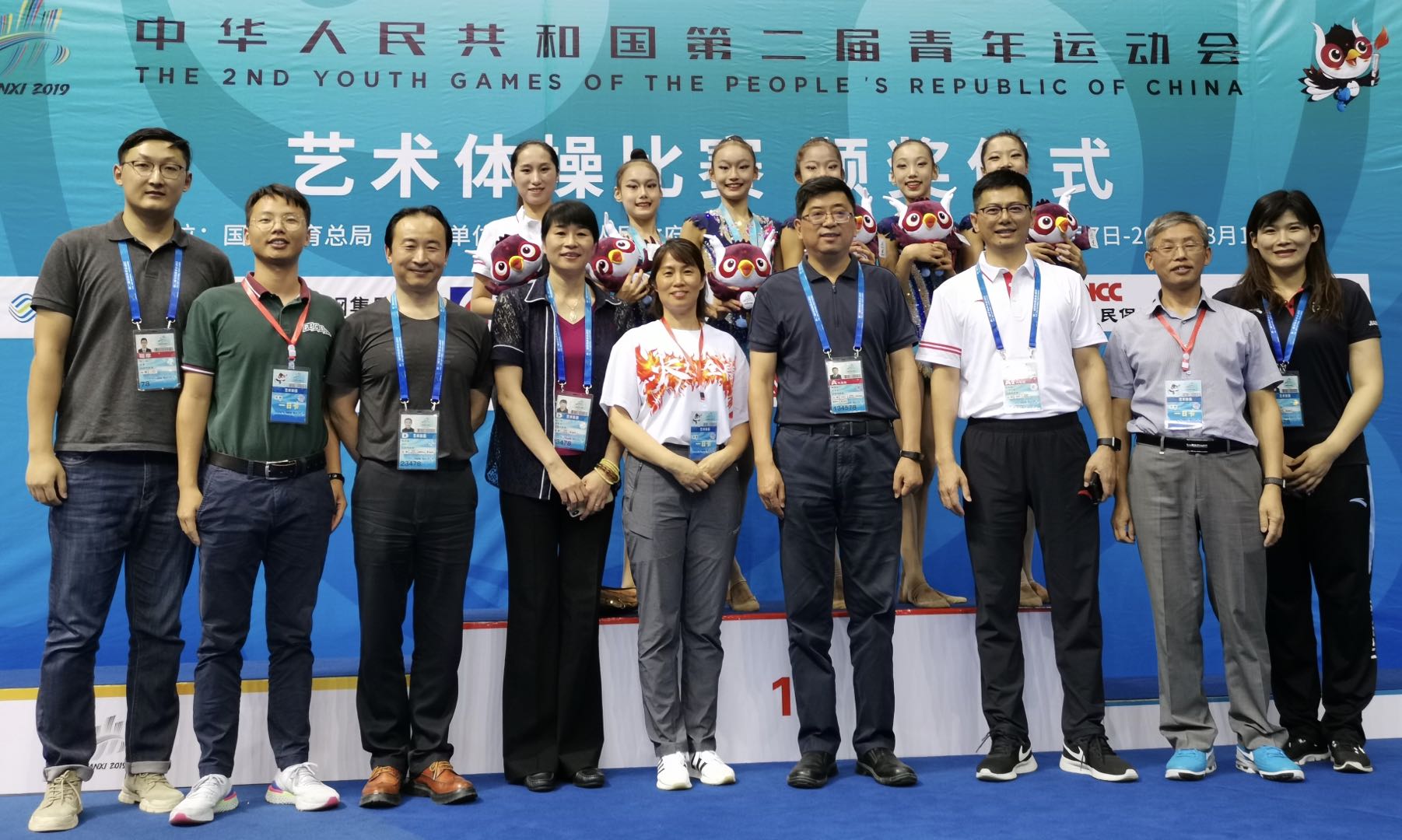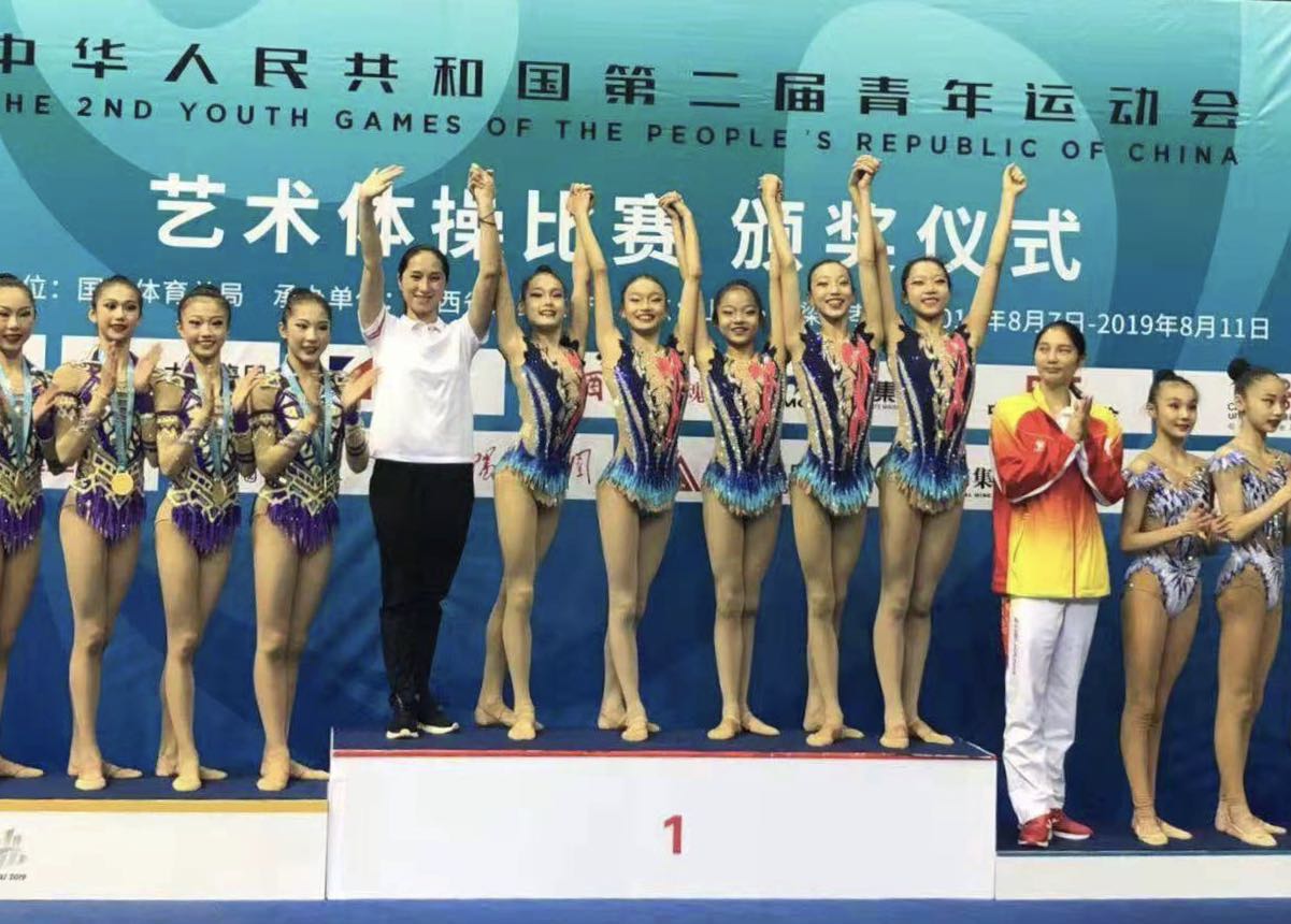 8月10日下午,在吕梁市孝义体育馆举行的“二青会”艺术体操体校甲组集体单项(五带)决赛中,PA视讯艺术体操队汤泽曦、黄羽寒、张施宇、范宜宣、陈逸萌表现出色,以12.80分夺得冠军,这是PA视讯集团入口“二青会”获得的第16枚金牌。