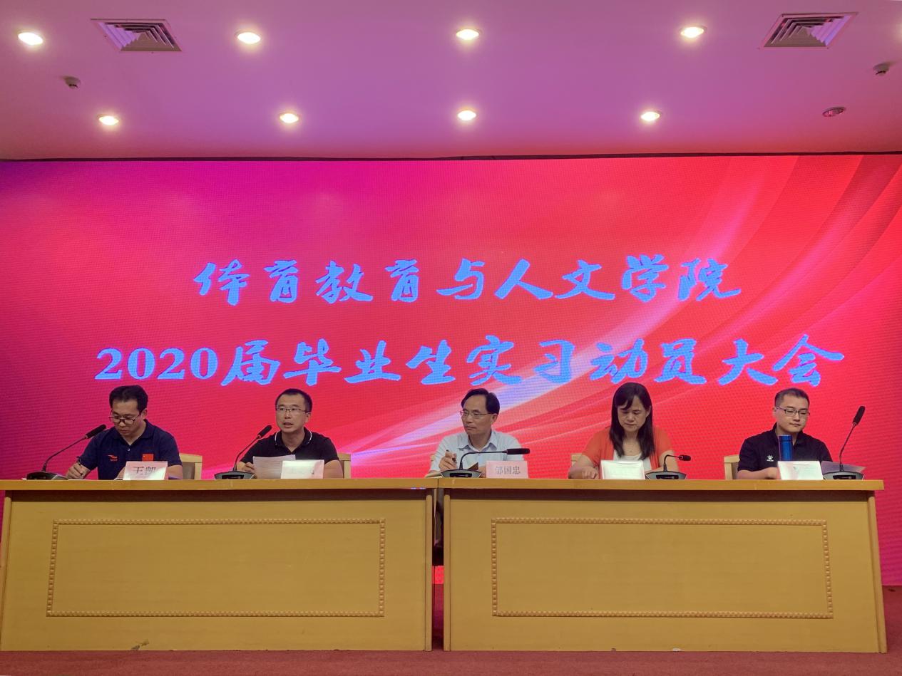 9月2日下午,体育教育与人文学院在图书馆报告厅召开2020届毕业生实习动员大会。教务处副处长王龙飞、创新创业实践科科长宋燕,体育教育与人文学院党总支书记邹国忠、院长沈鹤军、院党总支副书记卢奎、副院长王凯、实习带队老师、辅导员及2016级全体学生参加了会议,会议由王凯主持。