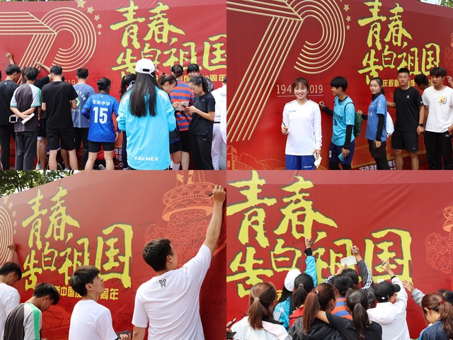 活动目的是激发学生的爱国热情,培养学生的爱国主义精神和社会主义道德风尚,引导学生坚定理想信念,树立远大抱负,并激励广大青年学子不忘初心,牢记使命。活动中,同学们纷纷写下自己对祖国七十华诞的美好祝愿,希望伟大祖国未来更加繁荣昌盛。活动现场气氛热烈。