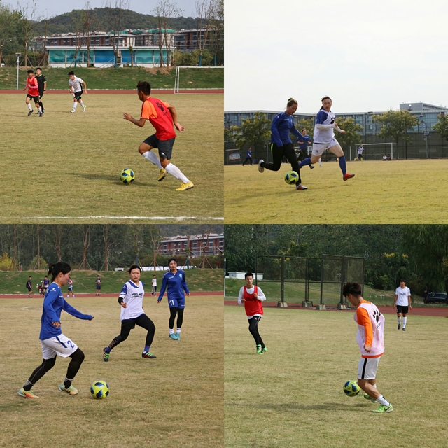 此次比赛分为两部分:第一场上半场为2019级足球专项男生对2017级足球专项男生,下半场为2019级足球专项男生对2018级足球专项男生;第二场为2019级足球专项女生对2017级、2018级足球专项女生。比赛现场气氛热烈,呐喊声、助威声一浪高过一浪。