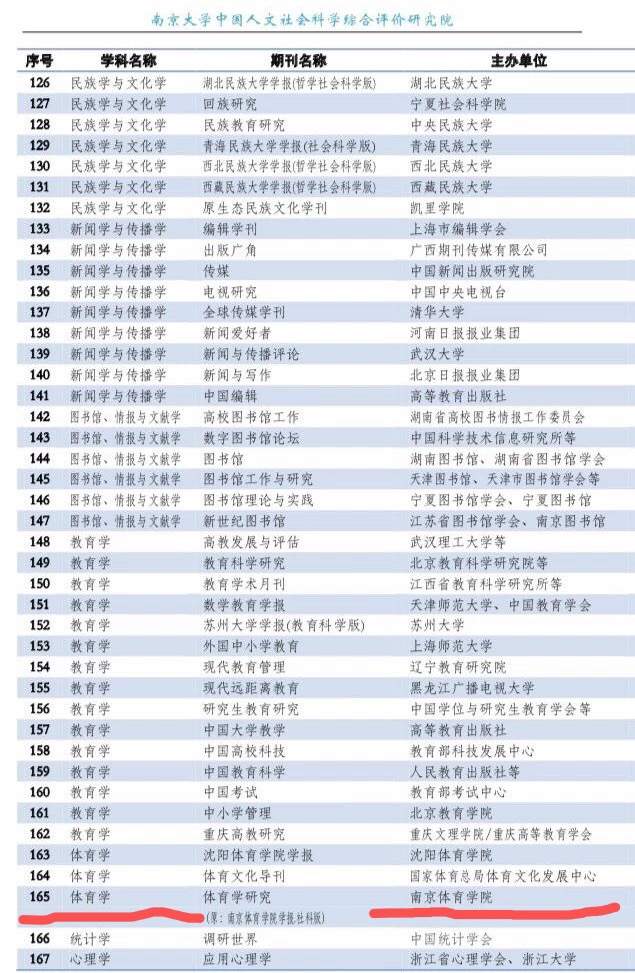 2019年3月25日,南京大学中国社会科学研究评价中心正式发布了CSSCI来源期刊目录(2019-2020)以及扩展版来源期刊目录(2019-2020),PA视讯主办的《体育学研究》正式入选CSSCI扩展版来源期刊目录。这是《体育学研究》更名以来继2018年获评“全国中文核心期刊”、“中国人文社会科学核心期刊”之后,又一次获得期刊评价机构的认可,这在PA视讯期刊发展史上,尚属首次。