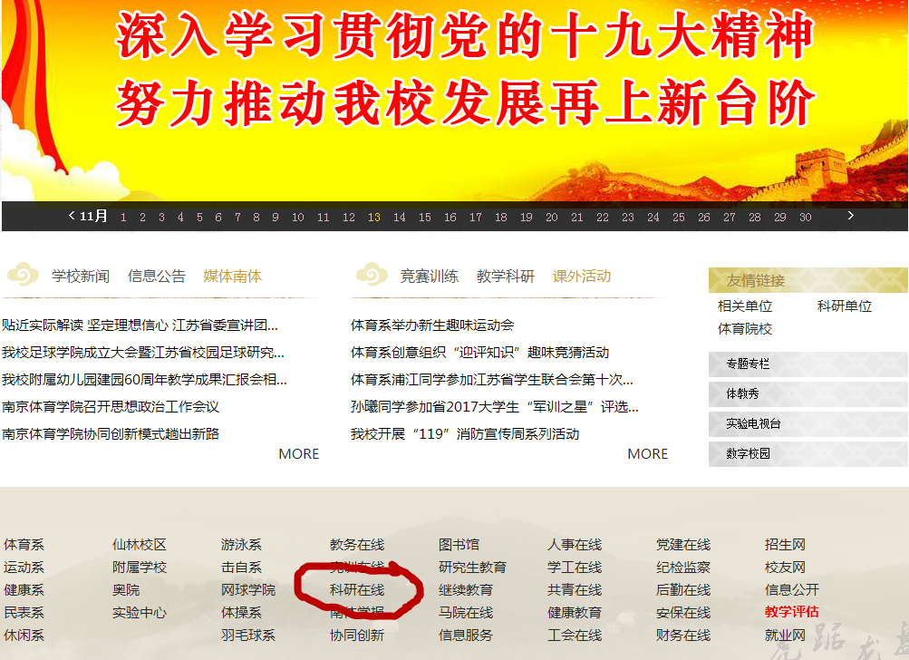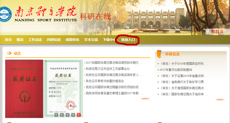 科研在线主页下拉“链接入口”,点击“科研管理系统”