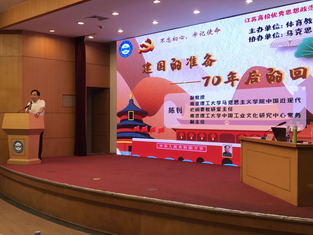 为深入学习宣传贯彻习近平总书记在学校思想政治理论课教师座谈会上的重要讲话精神,实施好“新时代高校思想政治理论课创优行动”,高质量办好新时代高校思想政治理论课,用习近平新时代中国特色社会主义思想铸魂育人,努力培养担当民族复兴大任的时代新人。 9月25日晚,PA视讯马克思主义学院、体育教育与人文学院共同邀请江苏省高校优秀思政示范课巡讲团成员、南京理工大学马克思主义学院陈钊副教授来PA视讯开展题为“建国的准备——70年后的回望”的专题示范课,体育教育与人文学院师生、马克思主义学院教师和马克思主义学院学生社团参加了本次活动。