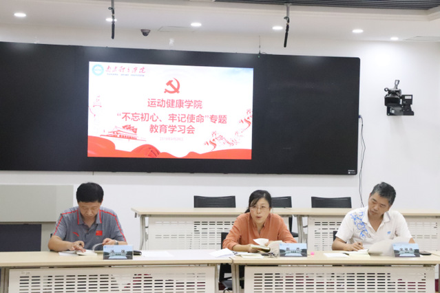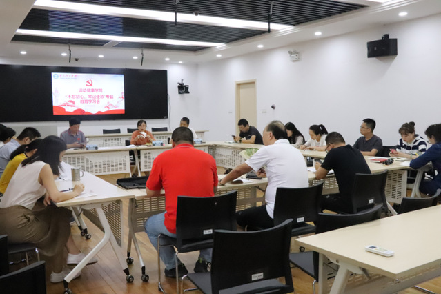 9月29日,运动健康学院党总支在图书馆第二报告厅召开“不忘初心、牢记使命”专题学习会,分别就全面从严治党、政治纪律和政治规矩两个专题进行了学习研讨,院长汤强列席会议。