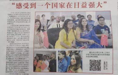 与此同时,在新华日报全媒体国际传播部实习的同学们表示,她们参与了众多新闻报道的实践工作,如在南京大学仙林校区举办的“江苏省欧美同学会庆国庆文艺汇演”的报道工作;苏州工业园区的采访;2019年海峡两岸“环太湖”文化周开幕式的拍摄;新华日报报社举办的“10月1日庆国庆直播”活动;江苏省侨联四十周年文艺晚会的新闻报道;“五所高校留学生看国庆”特别报道活动等等。在这一次次的新闻实践中,两位同学既得到了专业能力上的提升与锻炼,也认识到了自身的不足,留下了一篇篇记录着他们的成长的新闻稿件。她们表示:“第一次文稿被报纸采纳的时候是十分具有纪念意义的,这证明了之前的努力都是值得的。”“在采访过程中,老师鼓励我们去和采访对象交流,并寻找特色人物进行重点访谈,这种经历让我有很大的收获。”