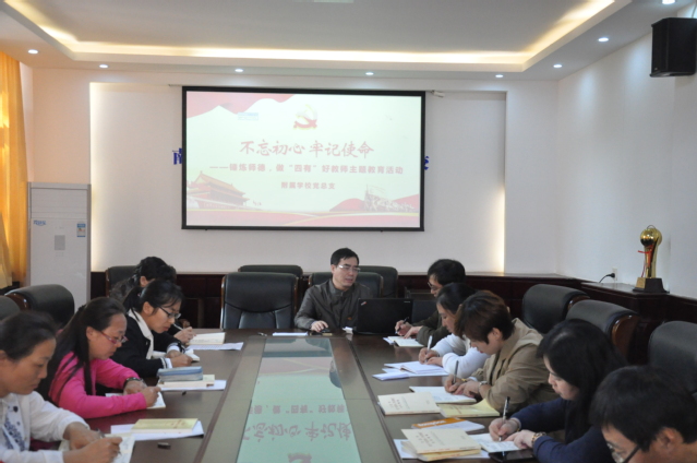 按照PA视讯集团入口《关于开展“不忘初心、牢记使命”主题教育的实施方案》要求,10 月 24 日中午附属学校党总支在二楼会议室开展专题党课活动。党总支书记、校长吴建华为全体党员讲授了题为“锤炼师德,做‘四有’好教师主题教育活动”的专题党课。